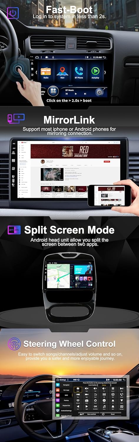 - 【FAST BOOT - 360° KAMERA】① Greifen Sie in weniger als 2 Sekunden auf das System zu, um die Bootzeit des Android-Systems von 25 auf nur 2 Sekunden zu beschleunigen, ist nie einfach. ②Die 360°-Panoramaparkfunktion lässt Sie die Lage um das Auto