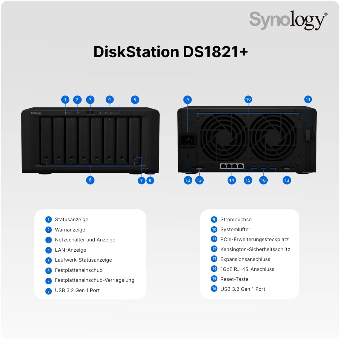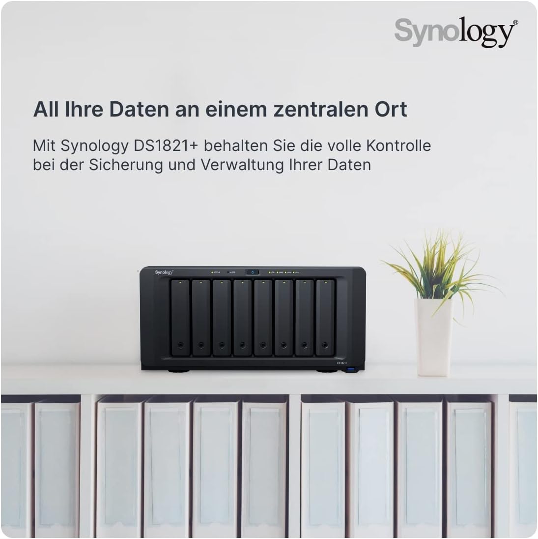 - Kapazität von 96 TB (8 x 12 TB Synology HAT5300 Festplatten)