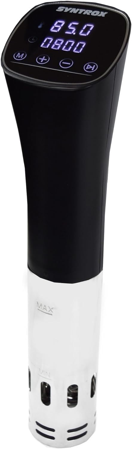 - Dank der eingebauten Umwälzpumpe kann die Temperatur des Wassers konstant auf dem eingegebenen Wert im Bereich von 40-90° Grad gehalten werden. Ihre vakuumierten Speisen werden garantiert optimal gegart.