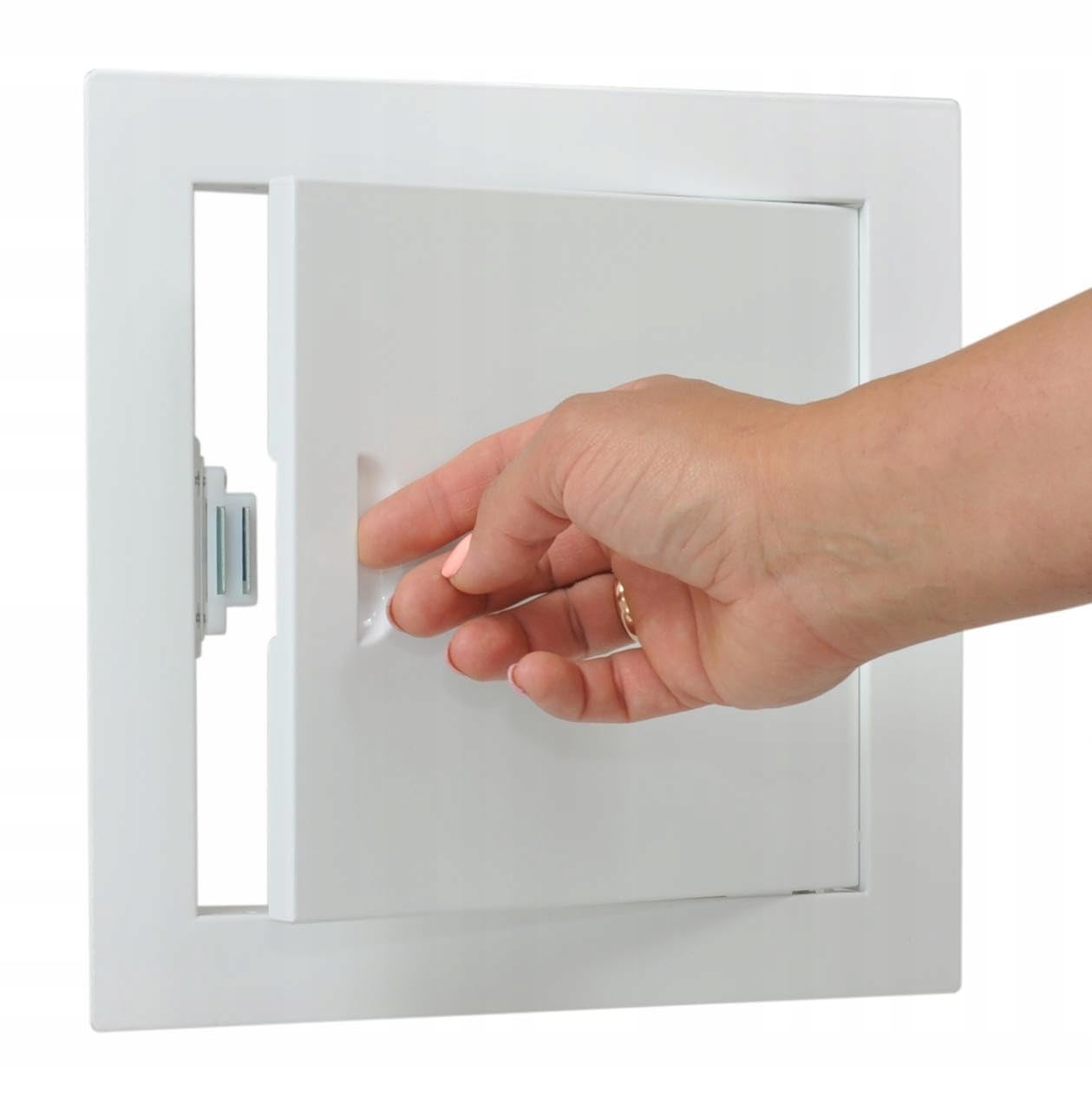 - ABMESSUNGEN: Einbaumasse betragen: 150x150 mm (15x15 cm) Die Toleranz Einbaumasse betragen: 5mm.; Aussenmass: 210x210 mm. Details im Diagramm sichtbar. Ausgestattet mit einem Magnetverschluss.