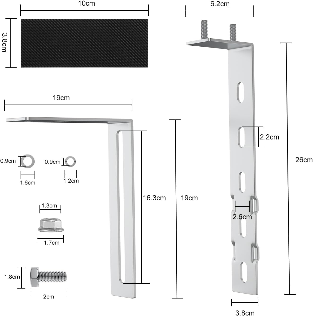 - Lieferumfang: Sie erhalten 8 verstellbare Solarpanel-Balkonhaken aus Edelstahl, 16 Unterlegscheiben aus Edelstahl, 8 Sechskantschrauben M6. (Sie müssen sich mit 2 selbstsichernden M6-Edelstahlschrauben ausrüsten, um es stabiler zu machen)