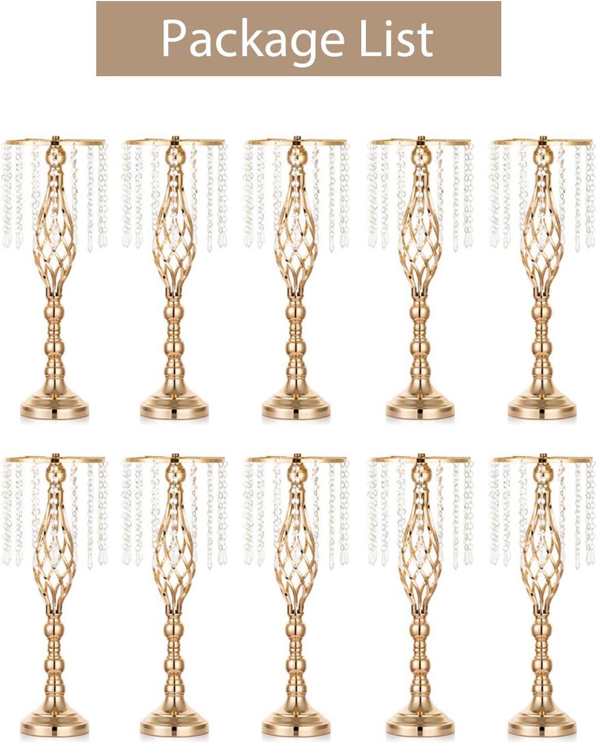 Sziqiqi 10 Stück Hochzeitsvase Für Tische, 55 cm Hohe Metall-goldvasen mit Kristallperlenkette für H