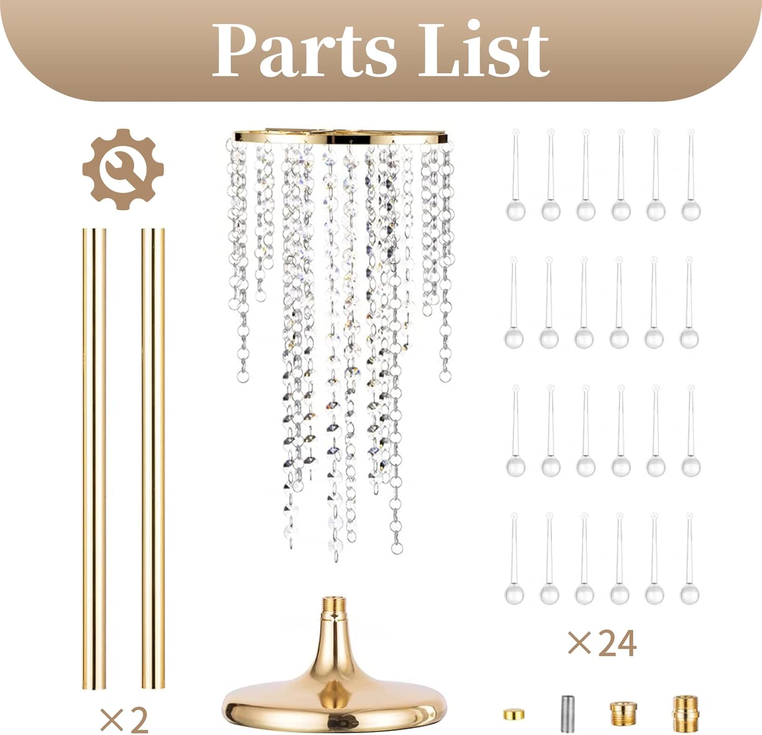 - EINFACH ZU MONTIEREN - Die 24pcs kristallketten sind auf der oberen platte installiert, sie müssen nur ths stangen mit der metallbasis montieren und die platte auf die oberseite legen, auch die kristallkugel mit der kette befestigen. sie werden in