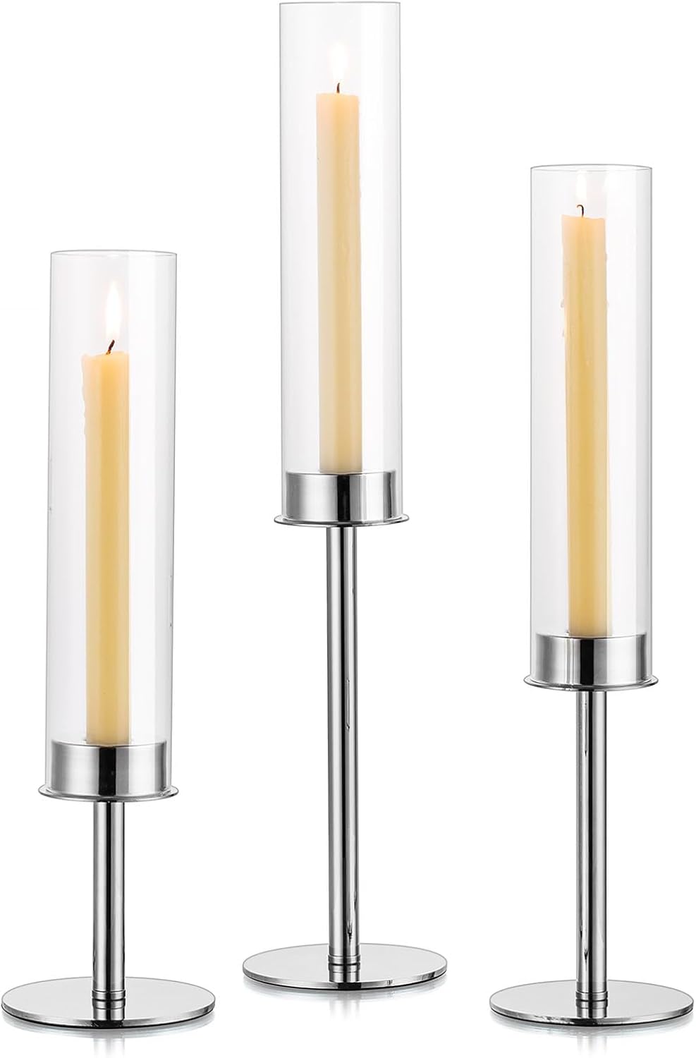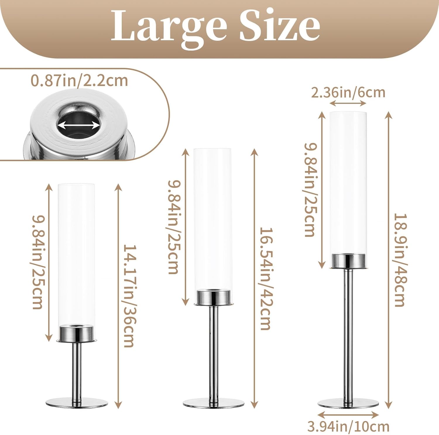 Sziqiqi Kerzenständer Silber Metall für Hochzeit - 48/42/36cm Kerzenhalter Dekorative Stabkerzenhalt