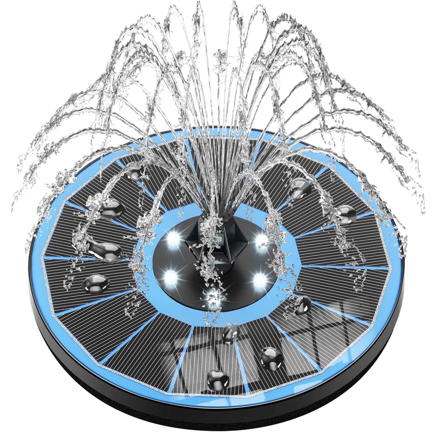 - 【💦8 verschiedene Wasserstile】Der Solar-Vogelbadbrunnen verfügt über 8 Düsen und kann Ihre unterschiedlichen Anforderungen an Wassersprühhöhen und -formen erfüllen. Der solarbetriebene Springbrunnen kann bei direkter Sonneneinstrahlung in 3