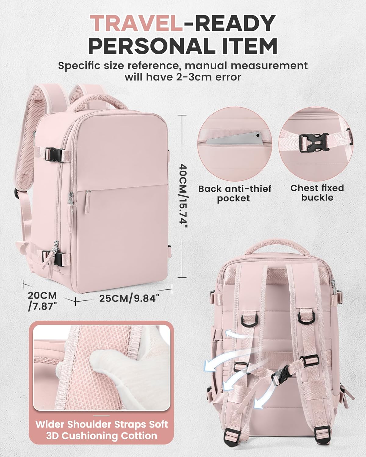 - 【Entspricht perfekt den Grössenvorschriften von Ryanair】 Dieser Rucksack hat eine Grösse von 40 x 20 x 25 cm und wurde speziell entwickelt, um die Handgepäckanforderungen von Ryanair zu erfüllen. Egal, ob es sich um einen Kurzstreckenflug oder