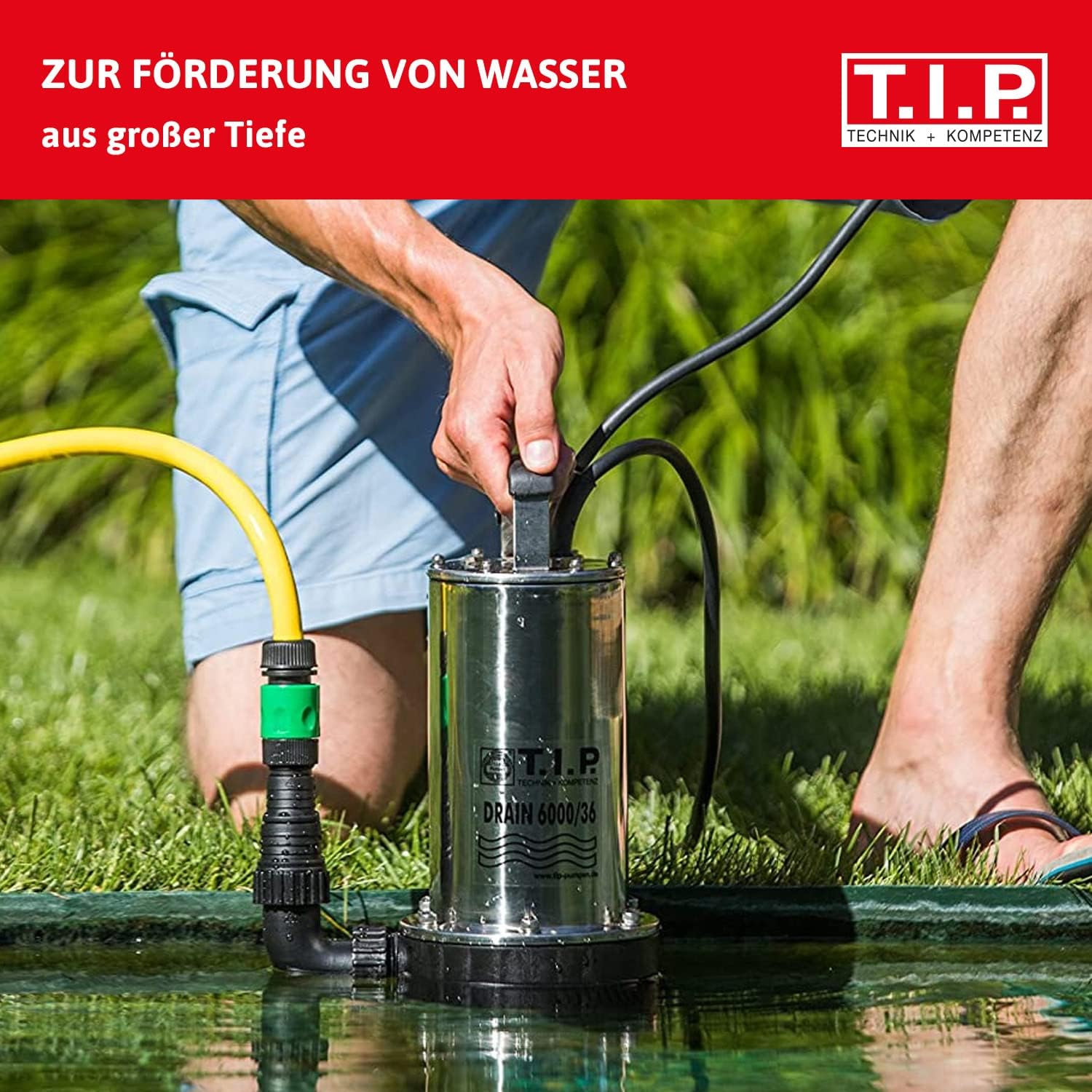 - Die Tauchdruckpumpe DRAIN 6000/36 ist speziell konzipiert für den mobilen Einsatz; zum Pumpen und zum Weiterleiten unter Druck von klarem Wasser bis zu 2 mm Korngrösse aus Brunnen und Zisternen mit einem Durchmesser von min. 500 mm