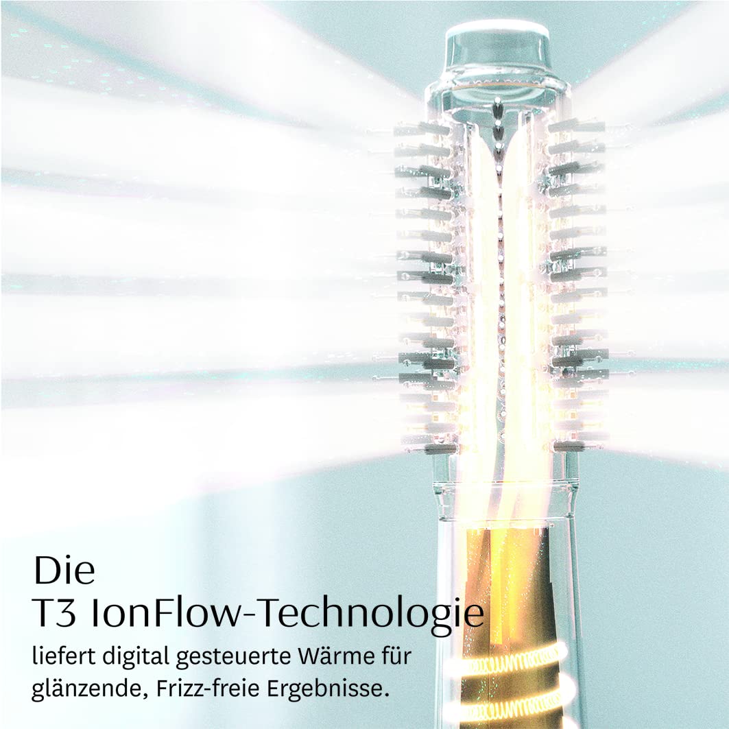 - Die T3 IonFlow-Technologie: Liefert einen mit Ionen angereicherten Luftstrom und präzise, digital gesteuerte Wärme für glänzende, Frizz-freie Ergebnisse