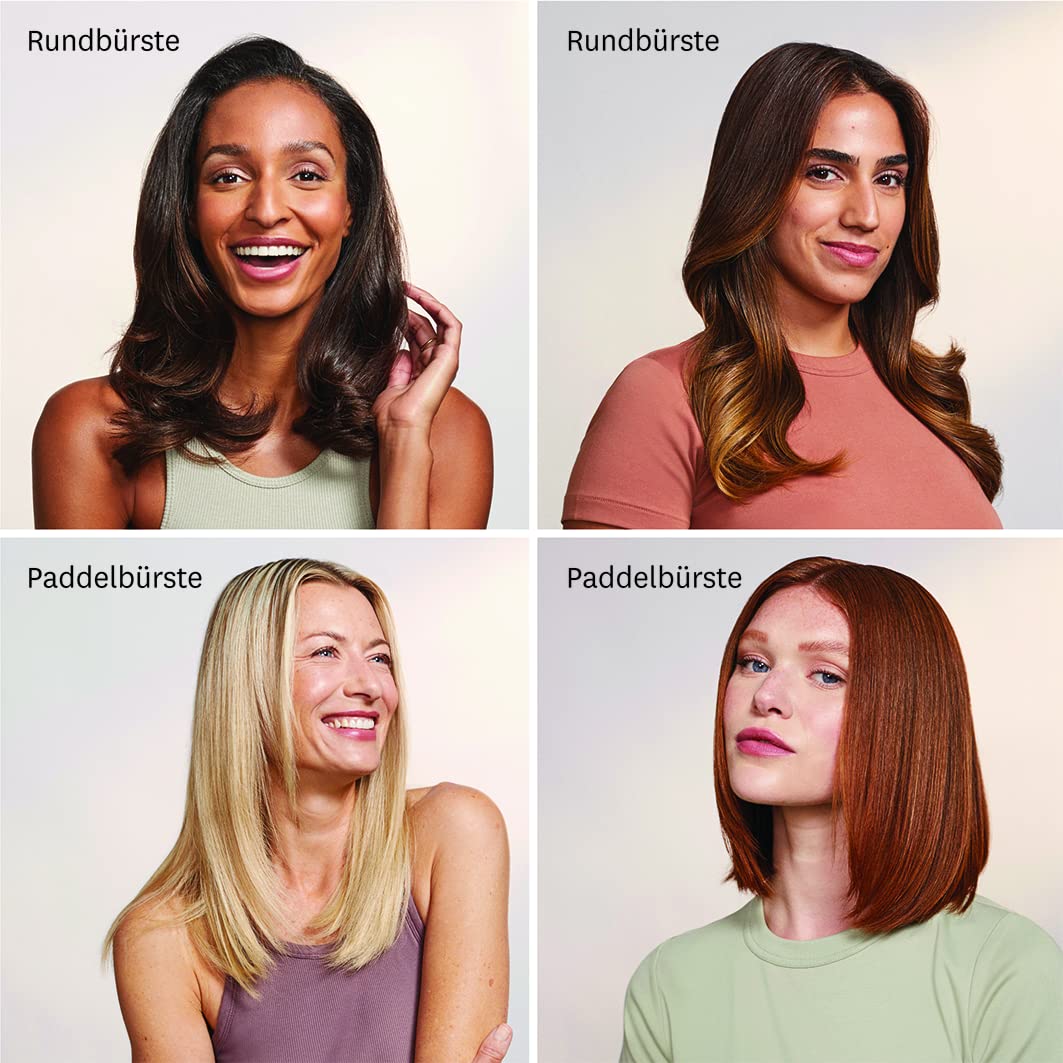 - Austauschbares Design: Für verschiedene Styling-Ideen wechseln Sie einfach die Heissluftbürsten-Aufsätze