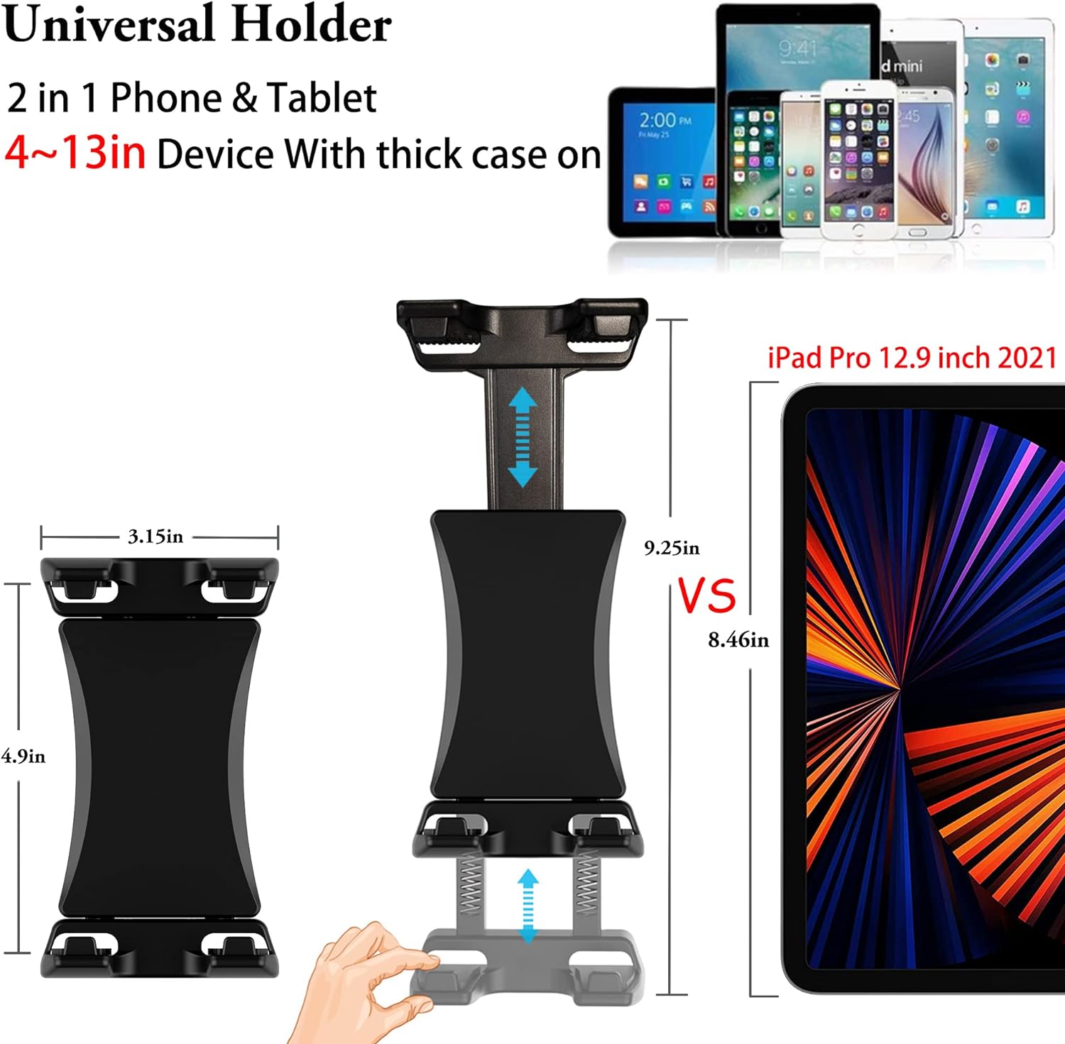 • 【3-in-1-Stativ】3-in-1-Kamera, Tablet, Smartphone-Stativ, Mehrzweck. Kompatibel mit allen Tablets auf dem Markt oder Tablet und Smartphone mit einer Bildschirmgrösse zwischen 4 und 13,5 Zoll, DSLR weniger als 6,6 lb. Wie iPad Pro 12.9 / 11 / 10.5 /