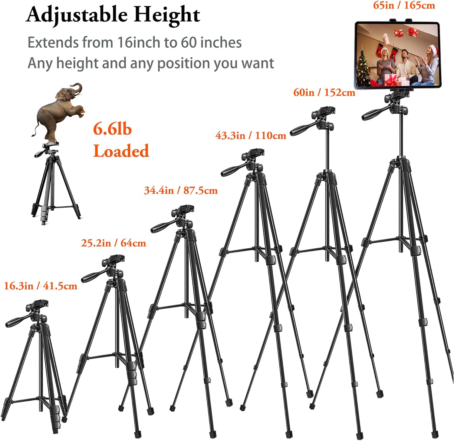• 【Einstellbares und stabiles Stativ】: Dieses Tablet-Stativ kann von 16 bis 55 Zoll eingestellt werden. 4-teilige Säulen-Teleskopstange mit Schnellverschluss-Hebelverschlüssen ermöglicht eine sekundenschnelle Einstellung der Arbeitshöhe. Bei