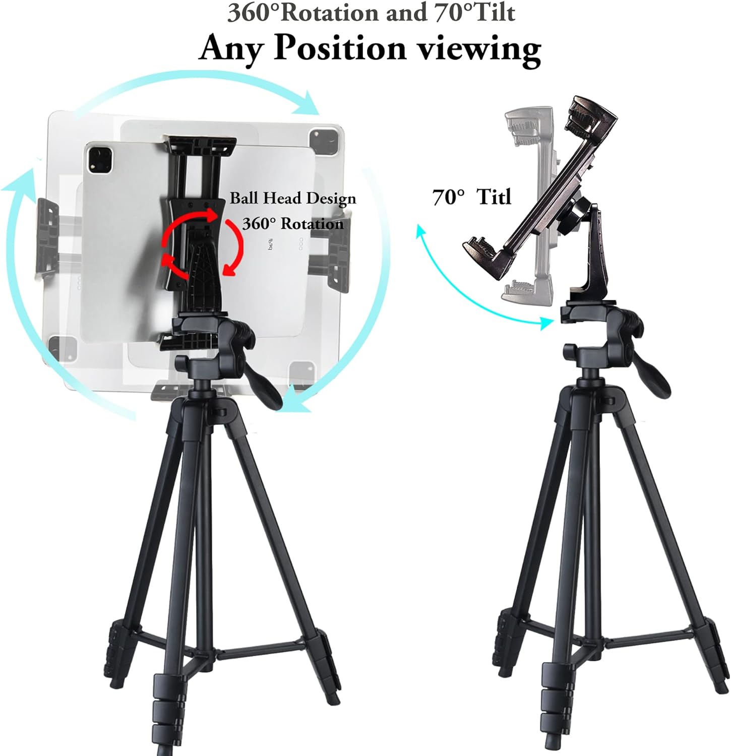 • 【Leicht und tragbar】: iPad-Stativ aus hochwertigem Aluminium, Gewicht nur 1,27 lb, faltbare Grösse 16 Zoll, einfach zu tragen. Geeignet für Vorlesungen, Präsentationen im Klassenzimmer, Turniere, Ausflüge, Vlogging, Selfies, Porträt- oder