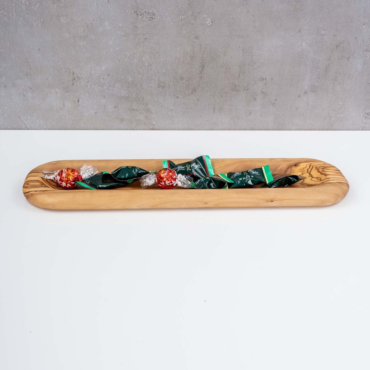 - Natürliches Olivenholz: Hochwertiges Tablett aus Olivenholz für eine einzigartige und natürliche Optik. Perfekt für eine rustikale Atmosphäre.