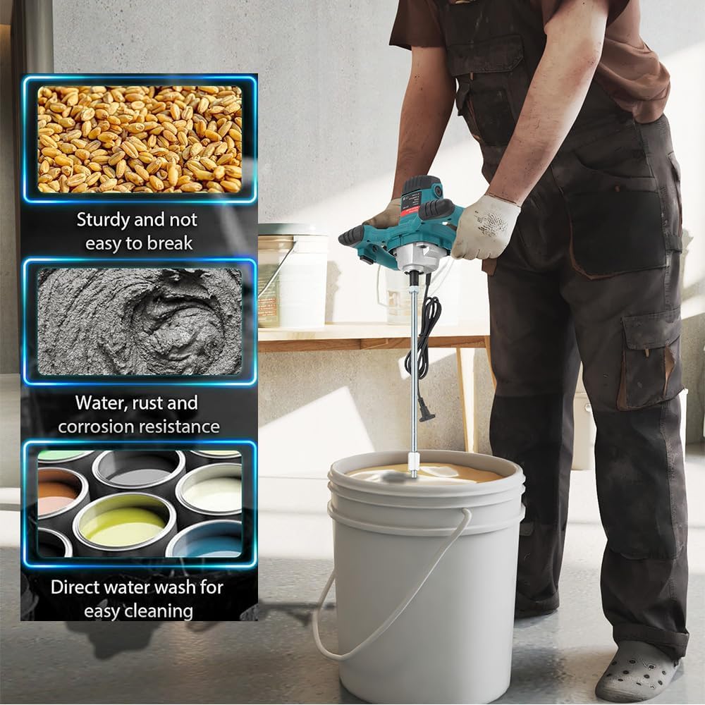 - Der Griff ist wie ein Lenkrad gestaltet, mit dem das Rührwerk einfach, leichtgängig und ruhig arbeitet kann.
