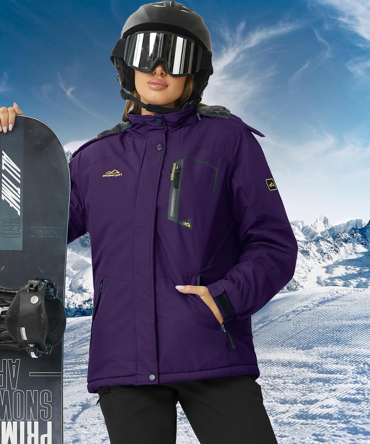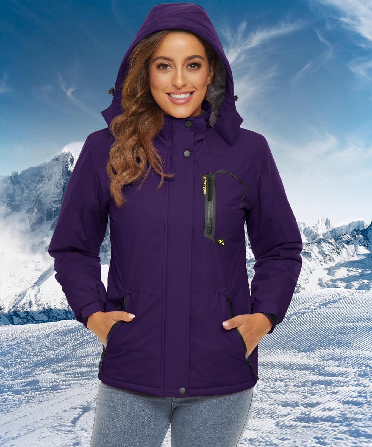 TACVASEN Damen Übergangsjacke Warm Winterjacke Gefüttert Wanderjacke Ski Jacket mit Wasserdichtem Re