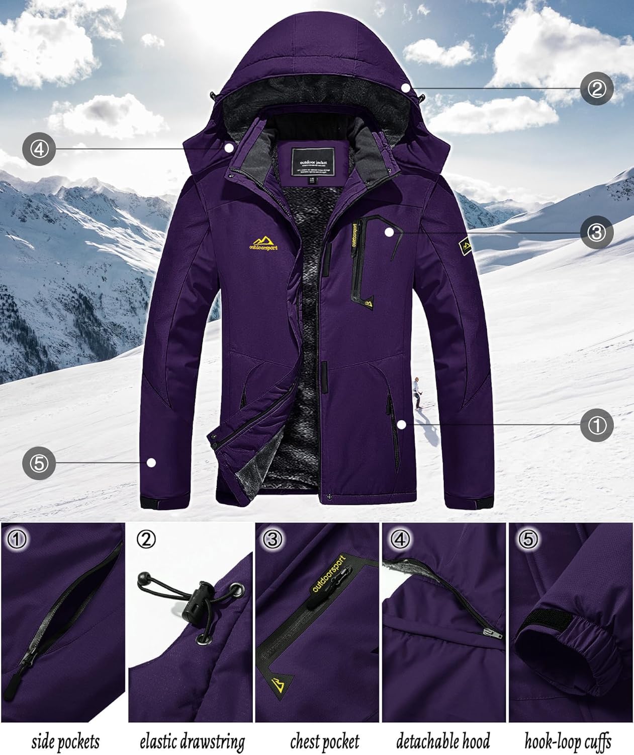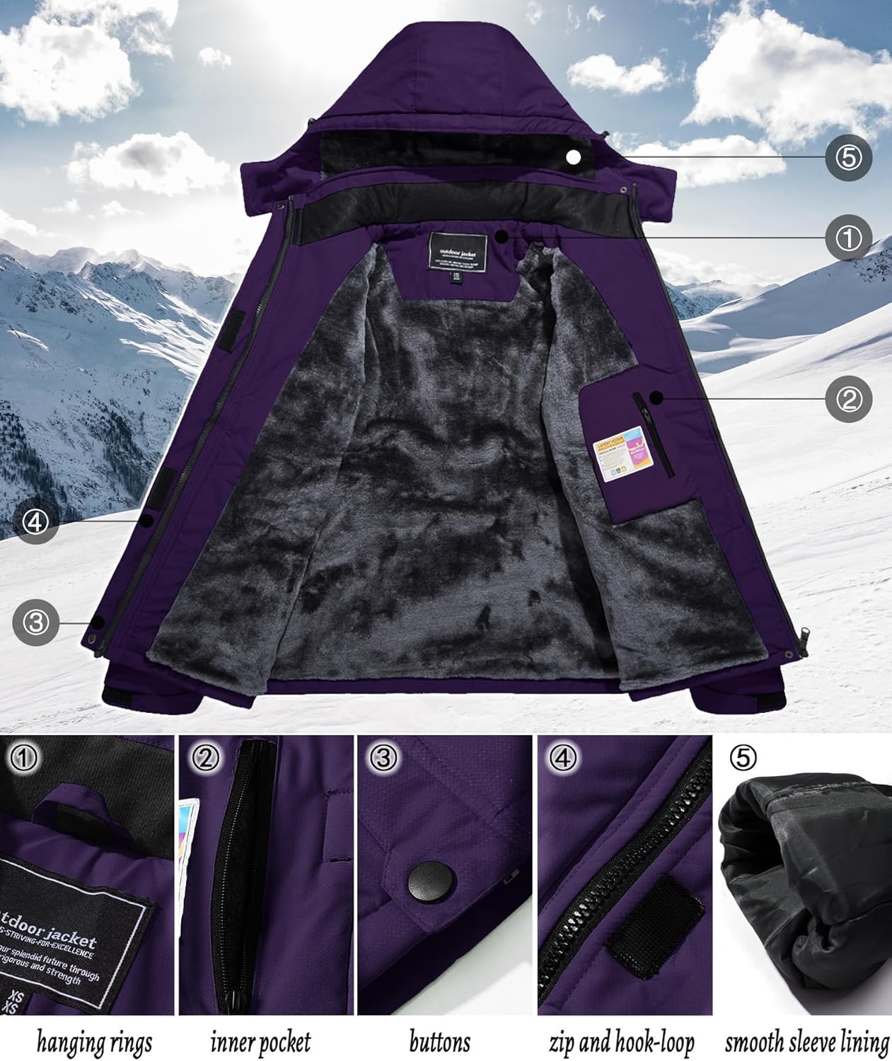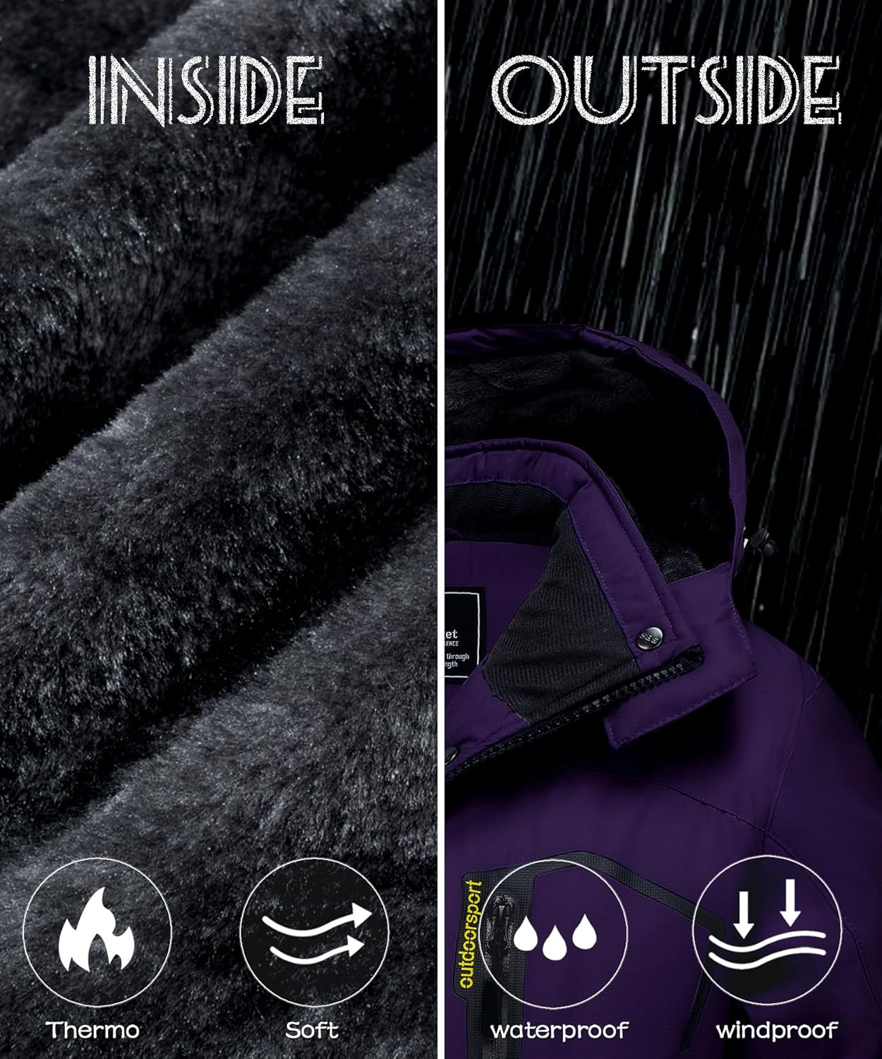 • Material: 100% Polyester - Atmungsaktiv, Wasserabweisend, Winddicht, Warm, Bequem.