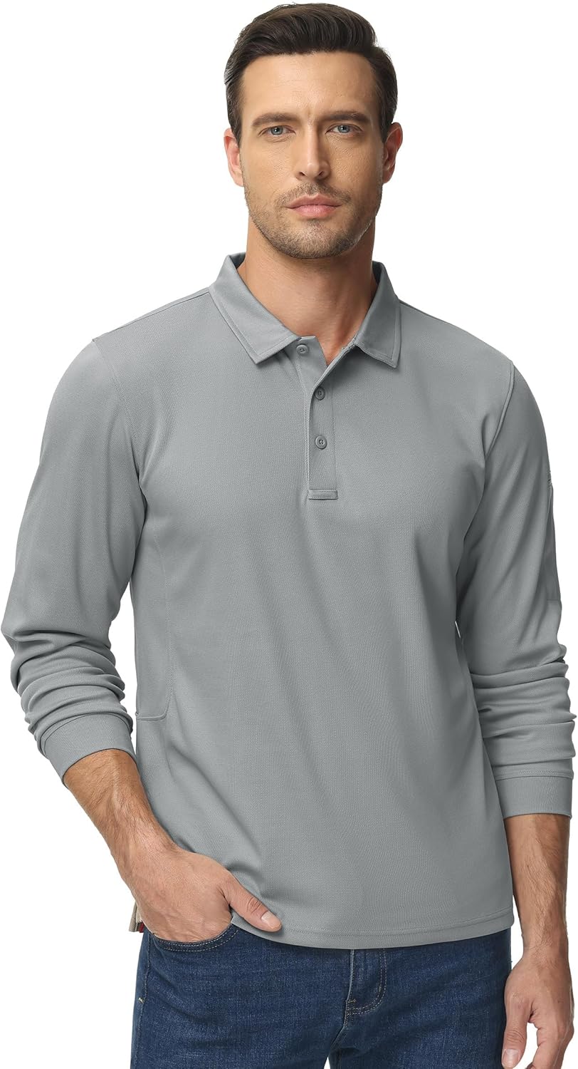 TACVASEN Herren Poloshirt Langarm Golf Tshirts Tactical Shirt Leicht Atmungsaktiv Freizeitshirts mit