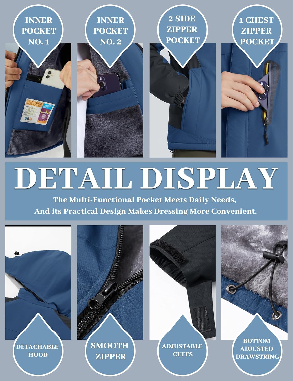 - Thermo Wanderjacke eignet sich sehr gut für Outdoor-Sportarten, wie Winterski, Schnee, Eislaufen, Snowboarden, Skifahren, Wandern, Camping, Jagen, Angeln, Reisen, Bergfischen, Hiking, Trekking usw.