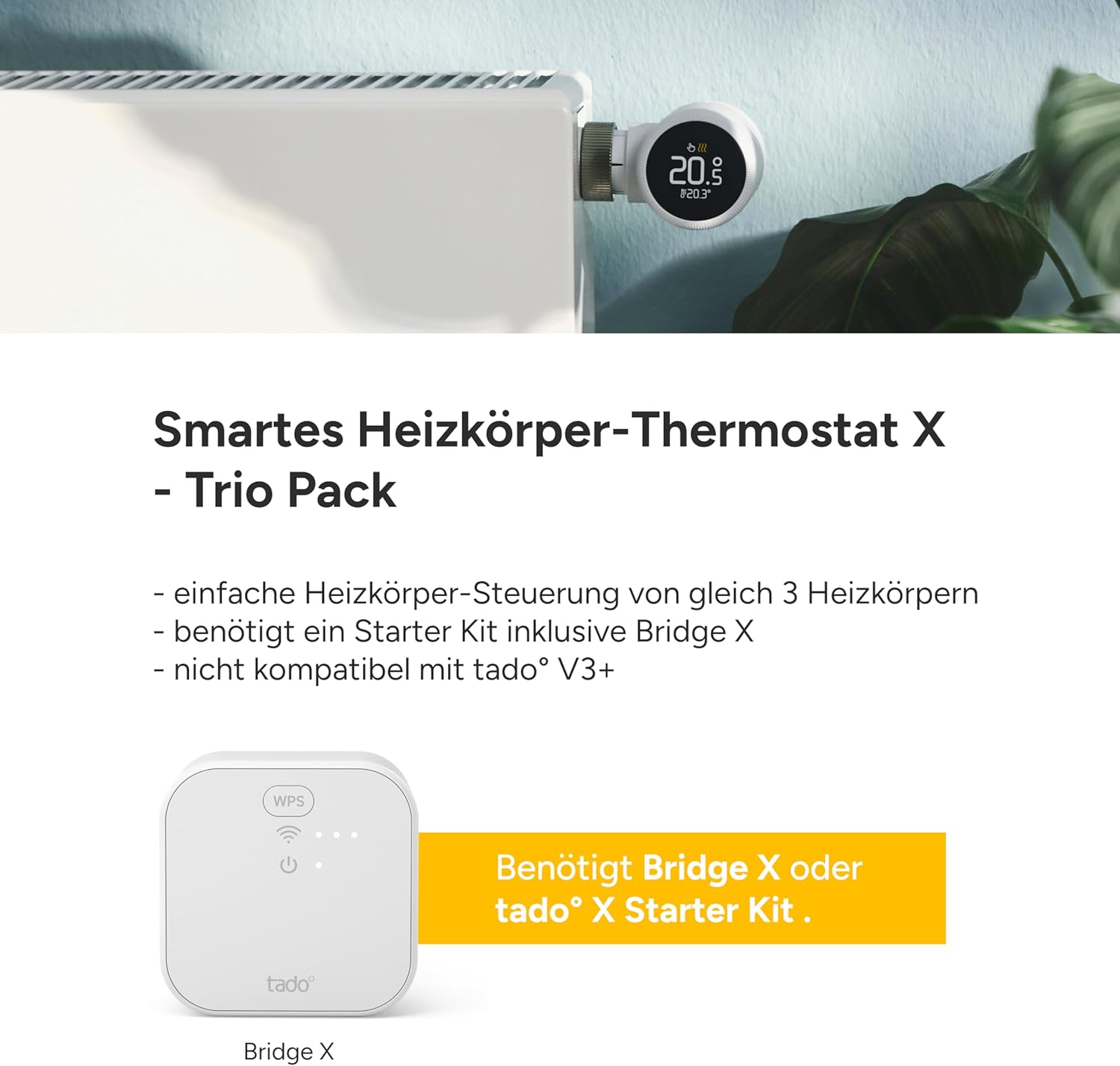 tado° Smartes Heizkörperthermostat X – Trio Pack, Heizungssteuerung per App und Smart Speaker (Alexa