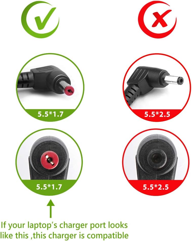 • ✅ Eingang : AC 100-240V ~50/60Hz, Ausgangsleistung: 19V 7,1A 135W Maximal. Anschlussgrösse: 5,5 mm * 1,7 mm. Alle Produkte haben die Zertifizierungen TUV, GS, CB, CE, UL, ROHS bestanden. Mit