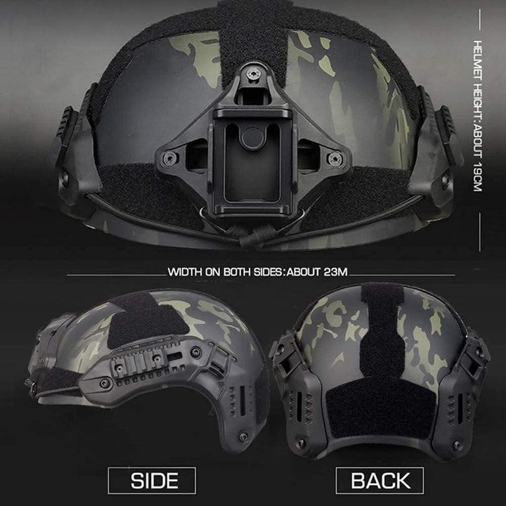 - [Multifunktionaler Helm]: Die Seitenschiene eignet sich für verschiedenes Zubehör und die integrierte NVG-Halterung ist mit den meisten GoPro NVG-Halterungen kompatibel. Geeignet für Kopfumfang 22,04-24,00 Zoll, verstellbare Schlinge und Kinn- /