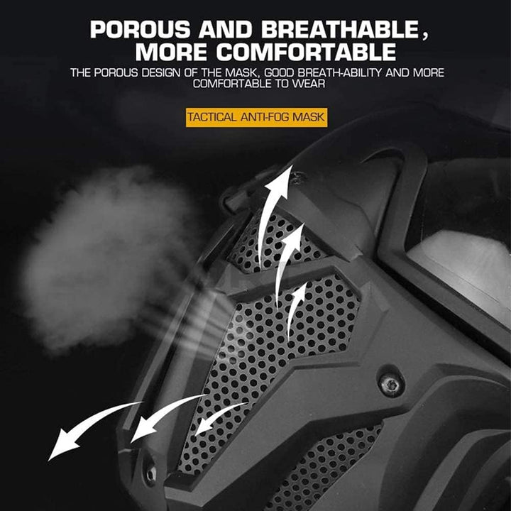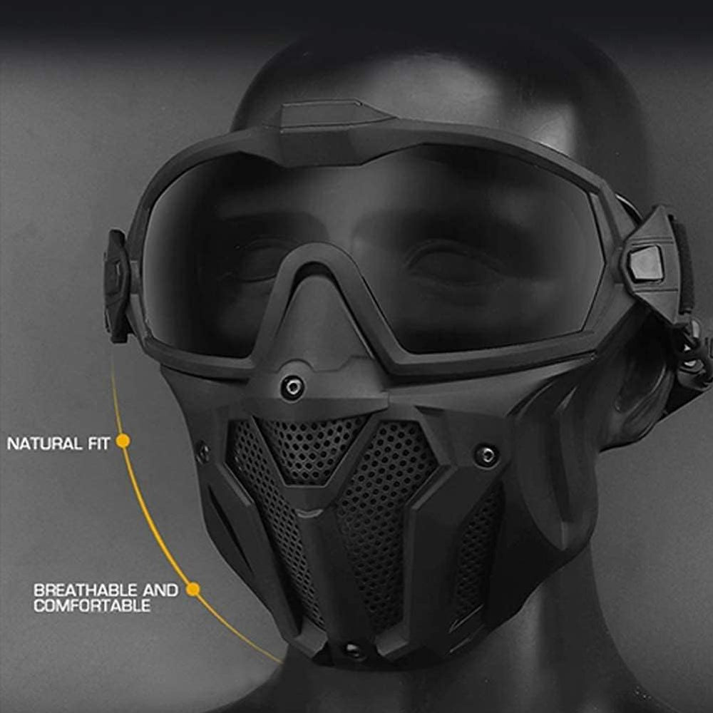 - [Atmungsaktive Paintball-Maske] Weiches, atmungsaktives TPU-Maskendesign, ca. 9,4 * 7,9 Zoll, Stirn, Nase und Wangen in der Maske haben gute Gummipolster, die eine bessere Fixier- und Dämpfungswirkung haben. Mit dem elastischen Riemen können Sie das
