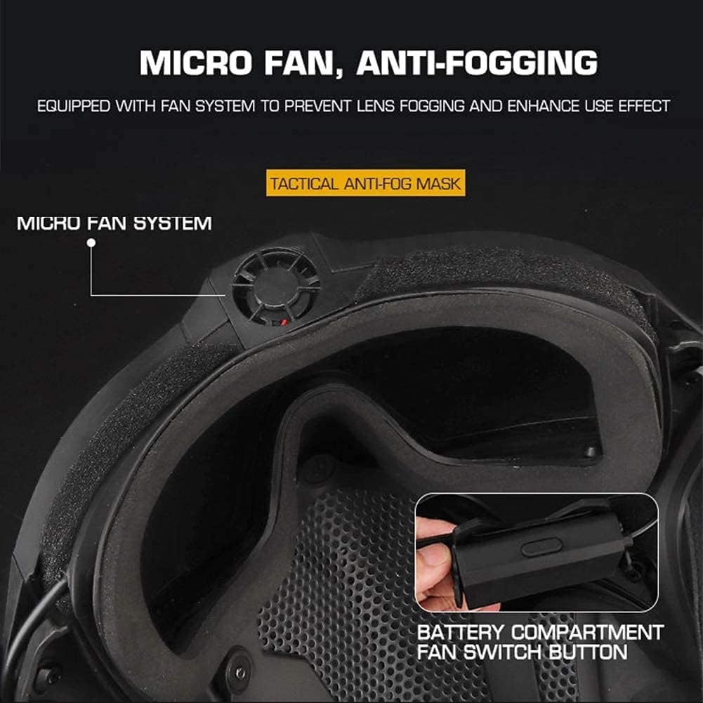 - [Minilüftersystem] Ausgestattet mit einem elektronischen Mikrolüfter, der die Luft effizient und geräuschlos aus der Brille absaugen kann. Die Kammer entlüftet feuchte Luft, um Sie von Rauch fernzuhalten (nicht 100% Anti-Fog).