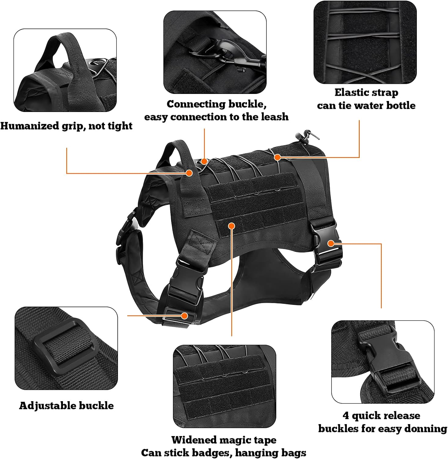 - Sparen Sie Geld: 3-teiliges Kombi-Paket! Das Paket enthält eine taktische Hundeweste, ein einfaches Hundehalsband und eine Hundeleine. Das MOLLE-System ist auf beiden Seiten des taktischen Hundegeschirrs für Taschen und Outdoor-Ausrüstung