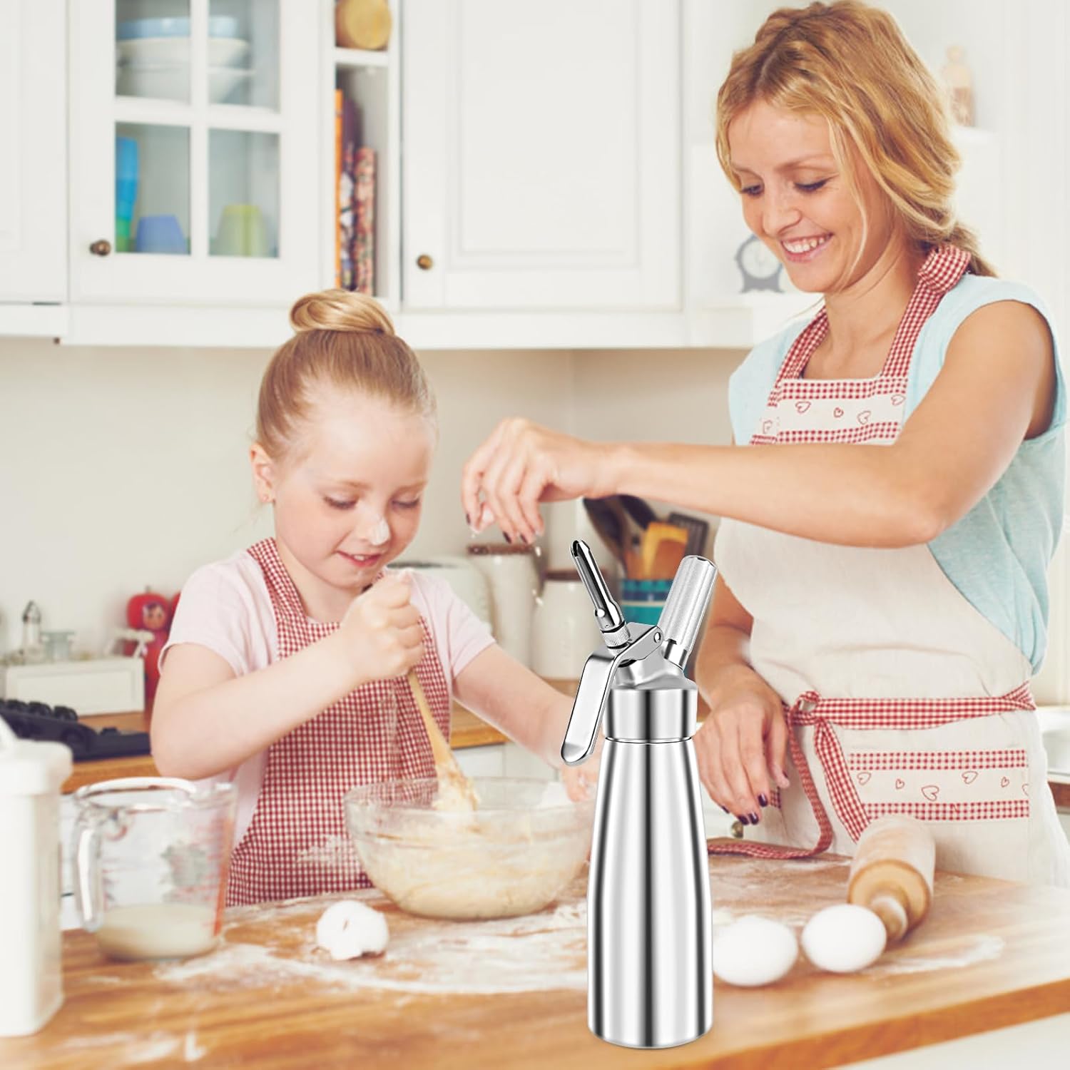 - 🍰Einfach zu bedienen: Der Griff der Buttercremepistole ist aus einer haltbaren Feder, Sie können die Buttercremeformen schnell auspressen und der Schlagsahne-Spender kann Ihre Schlagsahne tagelang frisch halten. Stellen Sie ihn einfach in den