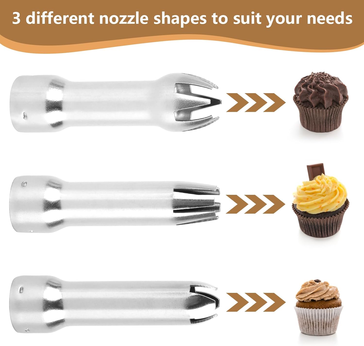 - 🍩Multifunktionale Düse: Enthält 3 Edelstahldüsen: Lotusdüse, gerade Düse und Kreuzdüse, Sie können den Kuchen nach Ihren Vorlieben und Bedürfnissen dekorieren, wir haben auch eine Reinigungsbürste, bequem für Sie, um die Düse leicht zu