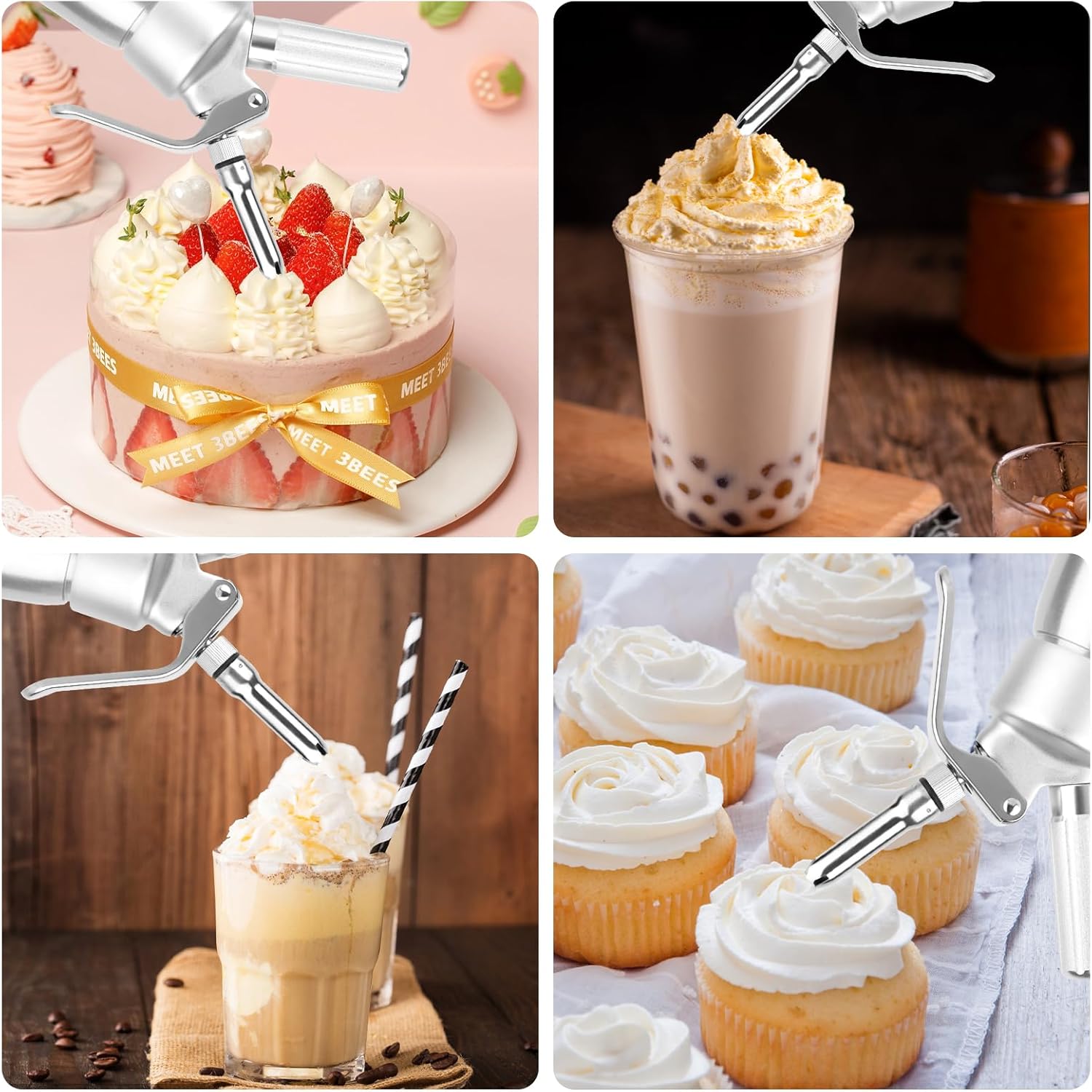 - 🥧Vielseitig einsetzbar: Mit diesem Produkt können Sie schöne Sahnemuster mit Schlagsahne kreieren, Kuchen, Gumbo, Mousse, Kaffee, Suppen, Saucen, verrückte Desserts usw. (sowohl heiss als auch kalt) dekorieren, köstlich und schön.