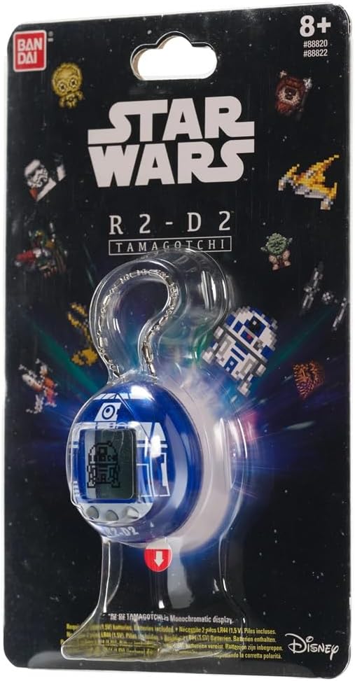 - Benötigt 2 LR44 -Batterie (im Lieferumfang enthalten). Blaues Modell. Eine andere Ausgabe des Star Wars Tamagotchi R2-D2 ist mit der Artikelnummer 88821 in weiss erhältlich.