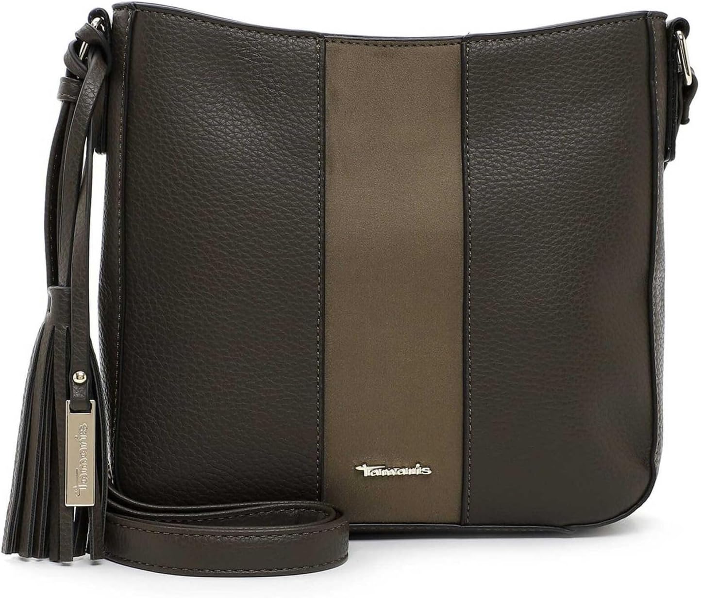 PRODUKTBESCHREIBUNGEN Tolle Accessoires für stilsichere Frauen Eine Handtasche zeigt die wahre Persönlichkeit einer Frau. Ob aufgeräumt oder etwas chaotisch - man muss sie einfach lieben! Die Umhängetasche Mareen kommt aus Feinsynthetik mit Reissverschluss und sieht einfach gut aus. Sie ist ein lässiges Statement für den Alltag. Eine Umhängetasche auf die man zählen kann. Das Modell besteht aus Feinsynthetik und lässt sich mit einem Reissverschluss verschliessen. Mit ihrer Mix-Optik und dem Material-Mix ist die hochwertige Umhängetasche ein echter Hingucker. Bei Tamaris finden Frauen, was ihnen wirklich gefällt. Die Umhängetasche hat ein übersichtliches Hauptfach. Ein Reissverschluss-Fach auf der Rückseite schafft zusätzlichen Stauraum und erlaubt den schnellen Zugang zu Dingen, die man immer griffbereit haben möchte. Das Modell Mareen ist von der Haptik eher weich und daher besonders angenehm zu tragen. Für das gewisse Extra sorgt die Applikation mit dem Logo-Anhänger, die direkt ins Auge fällt. Dieses neue Lieblingsstück wird dank längenverstellbarem Umhängeriemen einfach als Umhängetasche getragen. Mit der mittelgrossen Umhängetasche lassen sich Schlüssel, Portemonnaie, Handy und Co. problemlos transportieren. MARKE: Tamaris, die Marke für hochwertige Handtaschen und anspruchsvolle Damen / Frauen. Spezialisiert auf modische Umhängetaschen / Crossbody Bags aus ausgewähltem Feinsynthetik. TRAGEVARIANTE: Tragbar als Umhängetasche mit längenverstellbaren Umhängeriemen. DIMENSIONEN: Die Umhängetasche hat die Masse (BxHxT) 25 x 23 x 6 cm und ein Gewicht von 0,400 kg. Die Riemenlänge beträgt 140 cm. AUSSTATTUNG: Verschluss = Reissverschluss / Hauptfächer = 1 / Fächer hinten = Rückfach mit Reissverschluss / Innenausstattung = Innentasche mit Reissverschluss sowie ein Innensteckfach. MATERIAL: Hochwertiges und leichtes Feinsynthetik aus weichem Material gefertigt.
