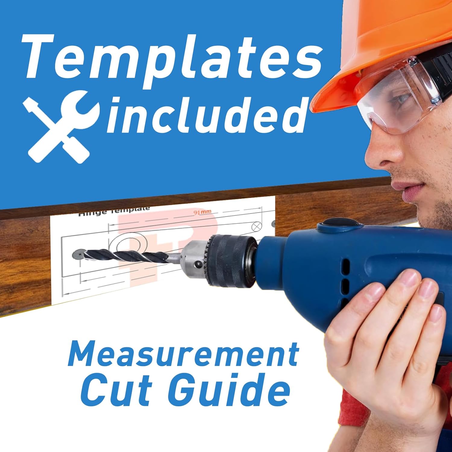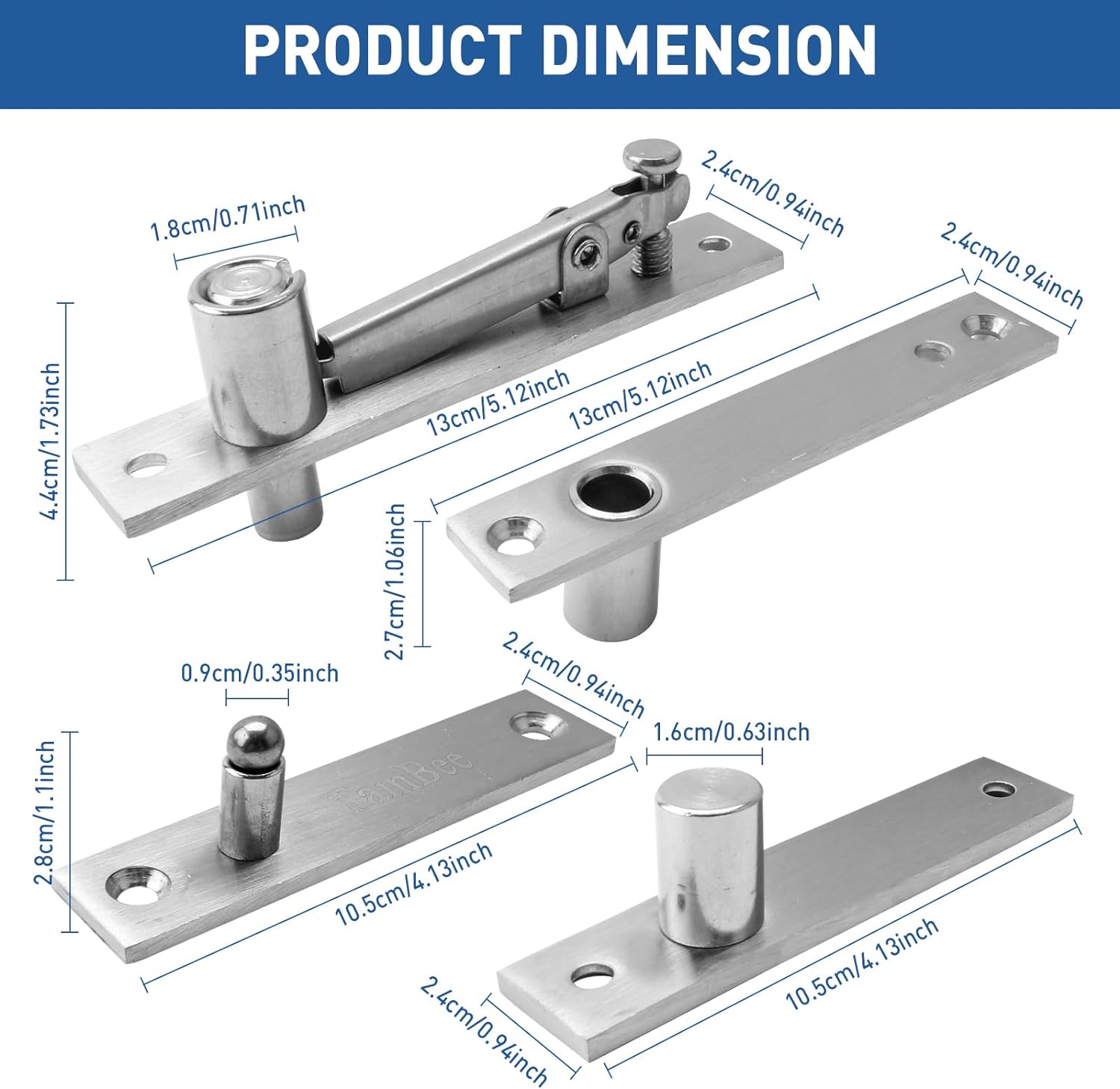 - Masse: oberer Teil 130 mm x 25 mm, unterer Teil 105 mm x 25 mm, Lochgrösse: 6 mm (wie abgebildet). Gewicht: 455 g, für Türgewichte von bis zu 50 kg; der Boden trägt das volle Gewicht der Tür anstatt des Türscharniers