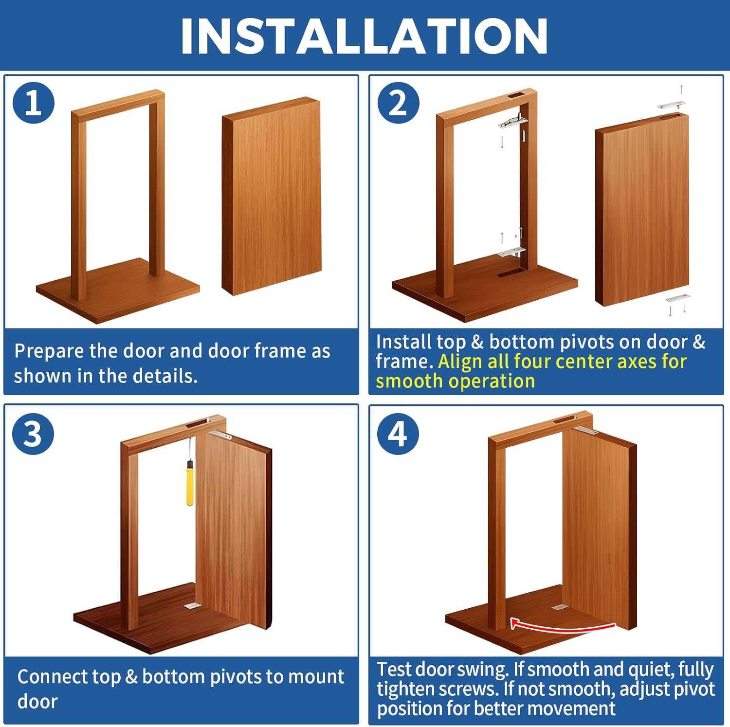 - Ermöglicht eine Tür, die sich von einem Punkt auf dem Boden unter der Mitte der Tür schwenkt, anstatt von Scharnieren an der Seite eines Türrahmens