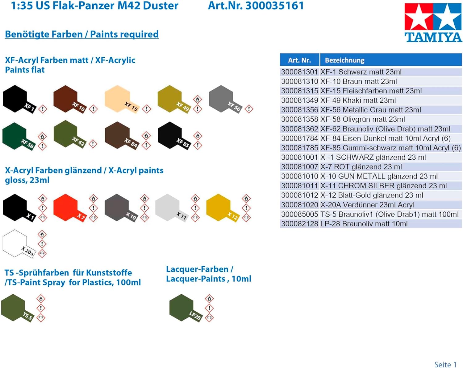 Tamiya 300035161 Militär 1:35 US Flak-Panzer M42 Duster, originalgetreue Nachbildung, Modellbau, Pla