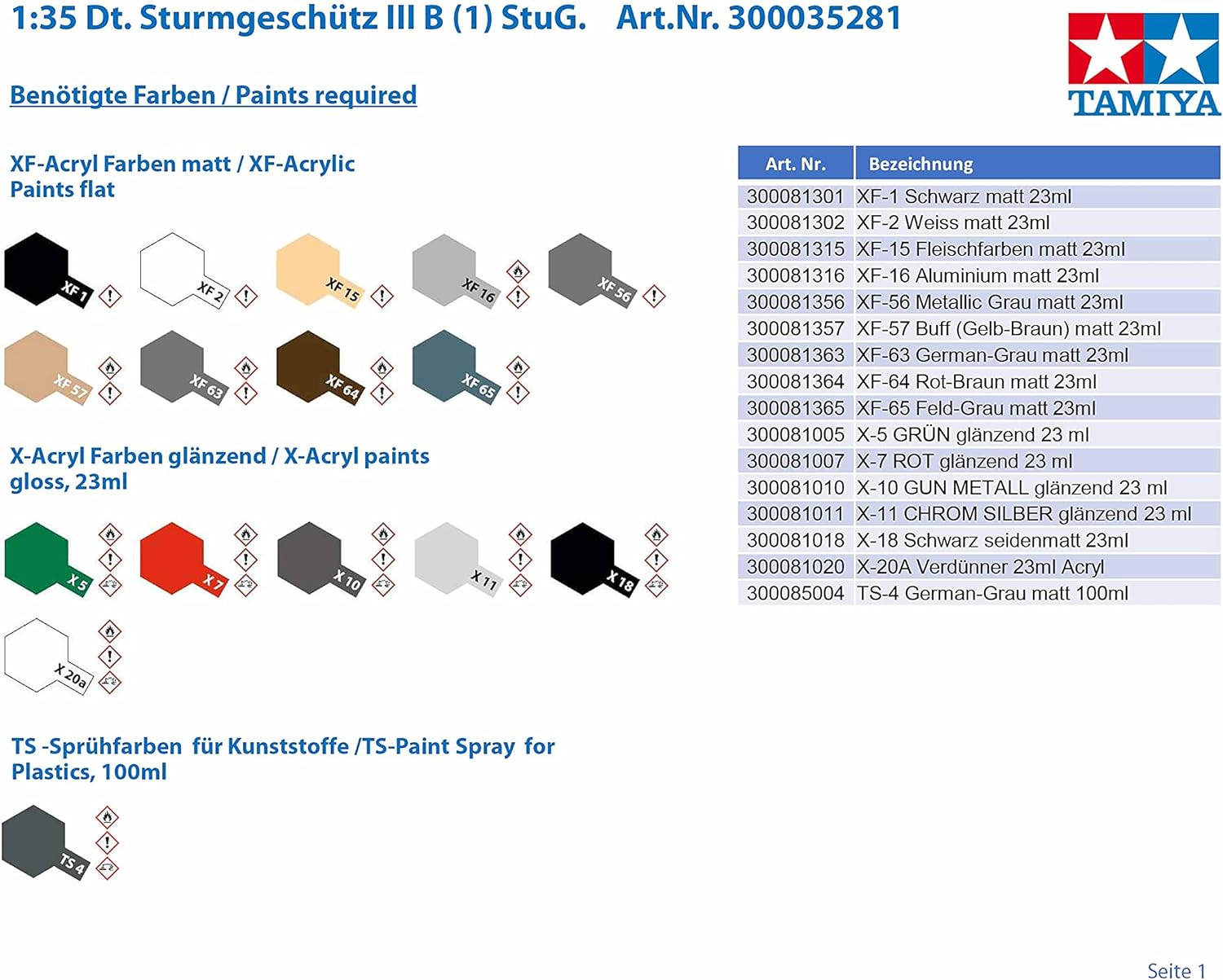 Tamiya 300035281 300035281-1:35 WWII Deutsche Sturmgeschütz III B (1),originalgetreue Nachbildung, P