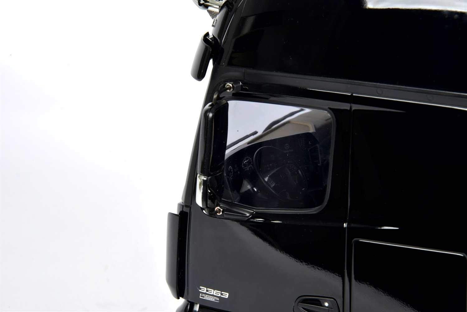- Der RC-Bausatz im Massstab 1:14 beinhaltet eine vorbildgetreue ABS Karosseriennachbildung des Arocs 3363