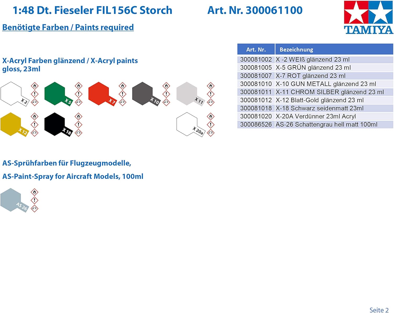 Tamiya 300061100-1:48 WWII Deutsche Fieseler FIL156C Storch