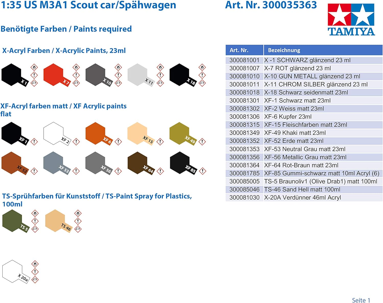 TAMIYA 35363 - 1:35 US M3A1 Scout car/Spähwagen, Modellbau, Plastik Bausatz, Hobby, Basteln, Kleben,