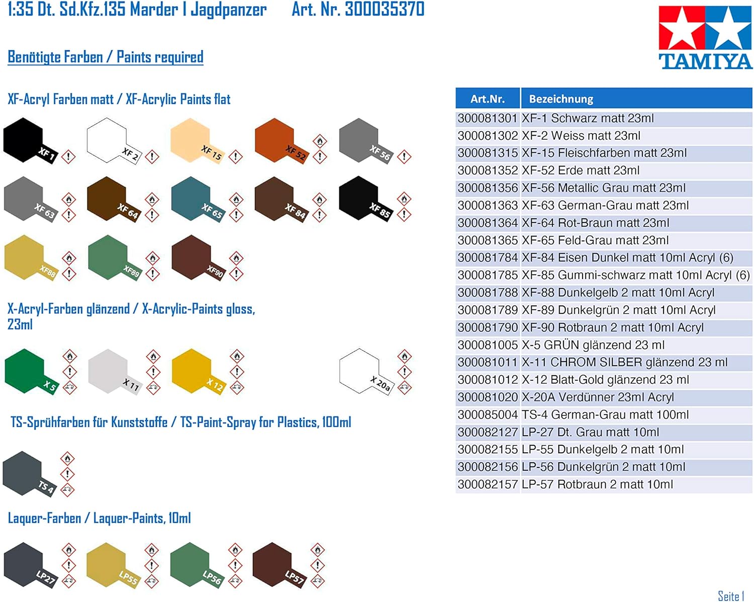 TAMIYA 35370-000 Spielzeug Militär 1:35 Deutscher Sd.Kfz.135 Marder I Jagdpanzer, Modellbausatz, Pla