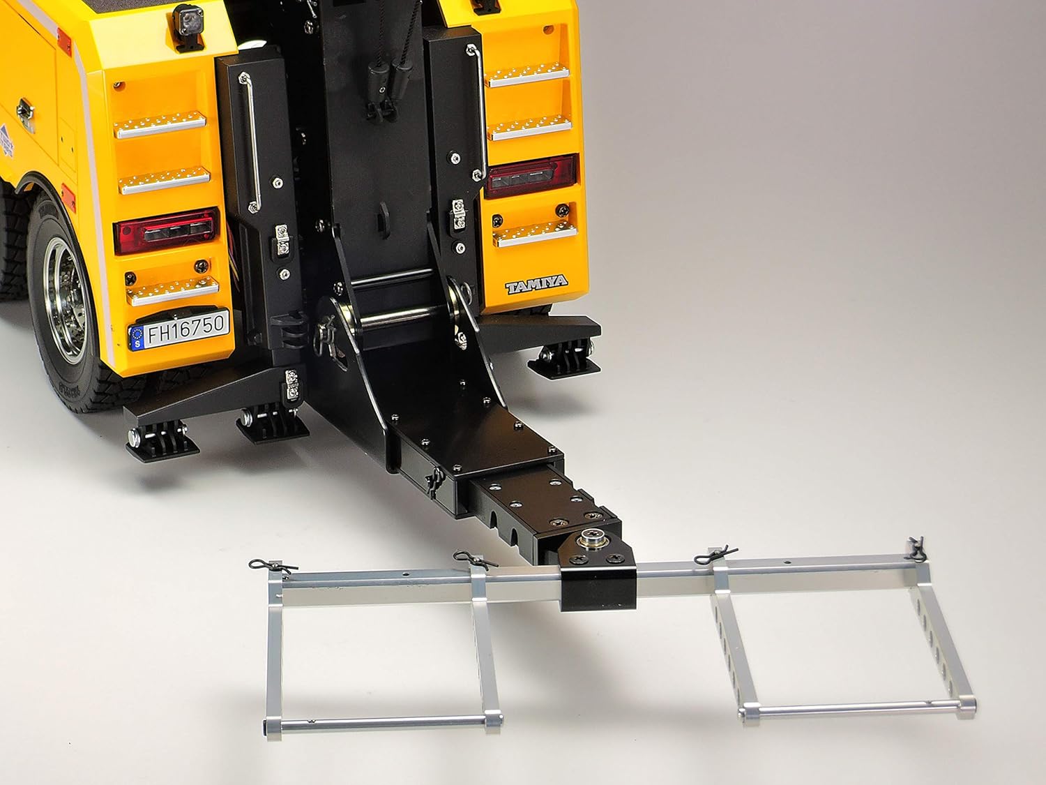 - Technische Details – Massstab 1:14, 750 x 195 x 300 mm gross, verstärkter Metallrahmen, zwei Differenziale, 3-Gang Schaltgetriebe, fest verschraubte Fahrerkabine, bebilderte Aufbauanleitung.