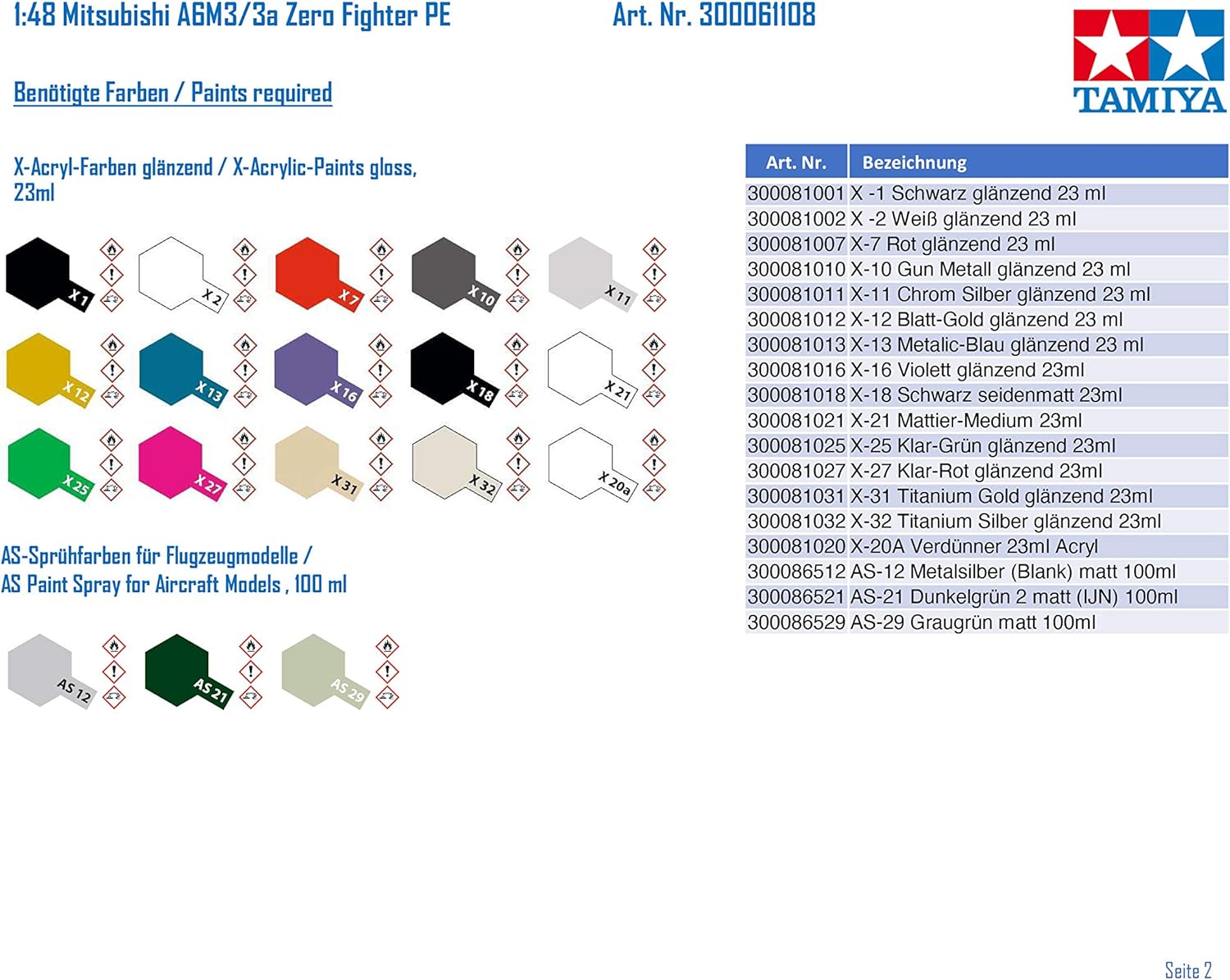TAMIYA TAM61108 - 0.075 Mitsubishi A6M3/3a Zero Fighter PE Flugzeug - Plastikbausatz - Modellbau - o