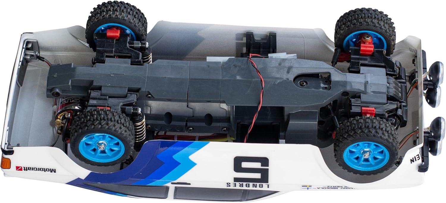 - Im Lieferumfang ist enthalten: Bausatzmodell mit ausführlich bebilderter Aufbauanleitung, Elektronischer Fahrtenregler, 540er Elektromotor Torque-Tuned, Polycarbonatkarosserie