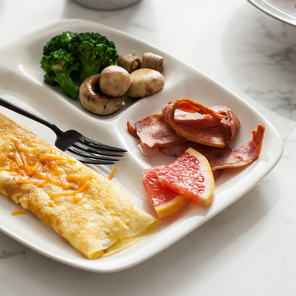 - Drei Fächer für die Portionierung von Speisen. In jedem separaten Fach dürfen die Lebensmittel nicht miteinander vermischt werden und der Geschmack der Lebensmittel bleibt erhalten. Ideal für die Zubereitung von Vorspeisen, Lunch-Combos und Speisen