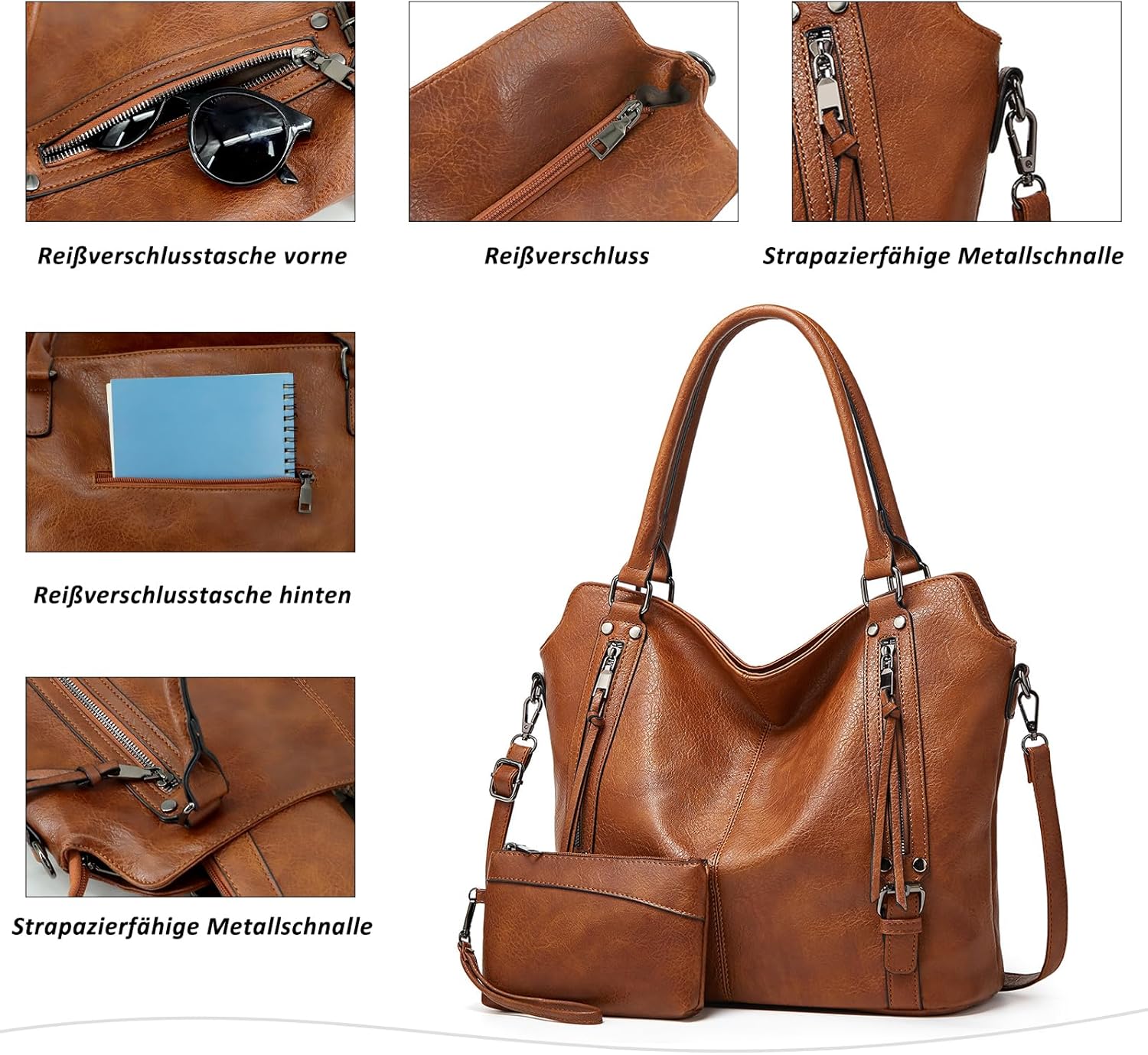 - 【Set—2 PCS 】1* Handtasche gross, 1*Geldbörse. Mit diesem Paketset kann sie alle Ihre Bedürfnisse erfüllen und einfach zwischen Arbeit, Studium und Alltag wechseln.