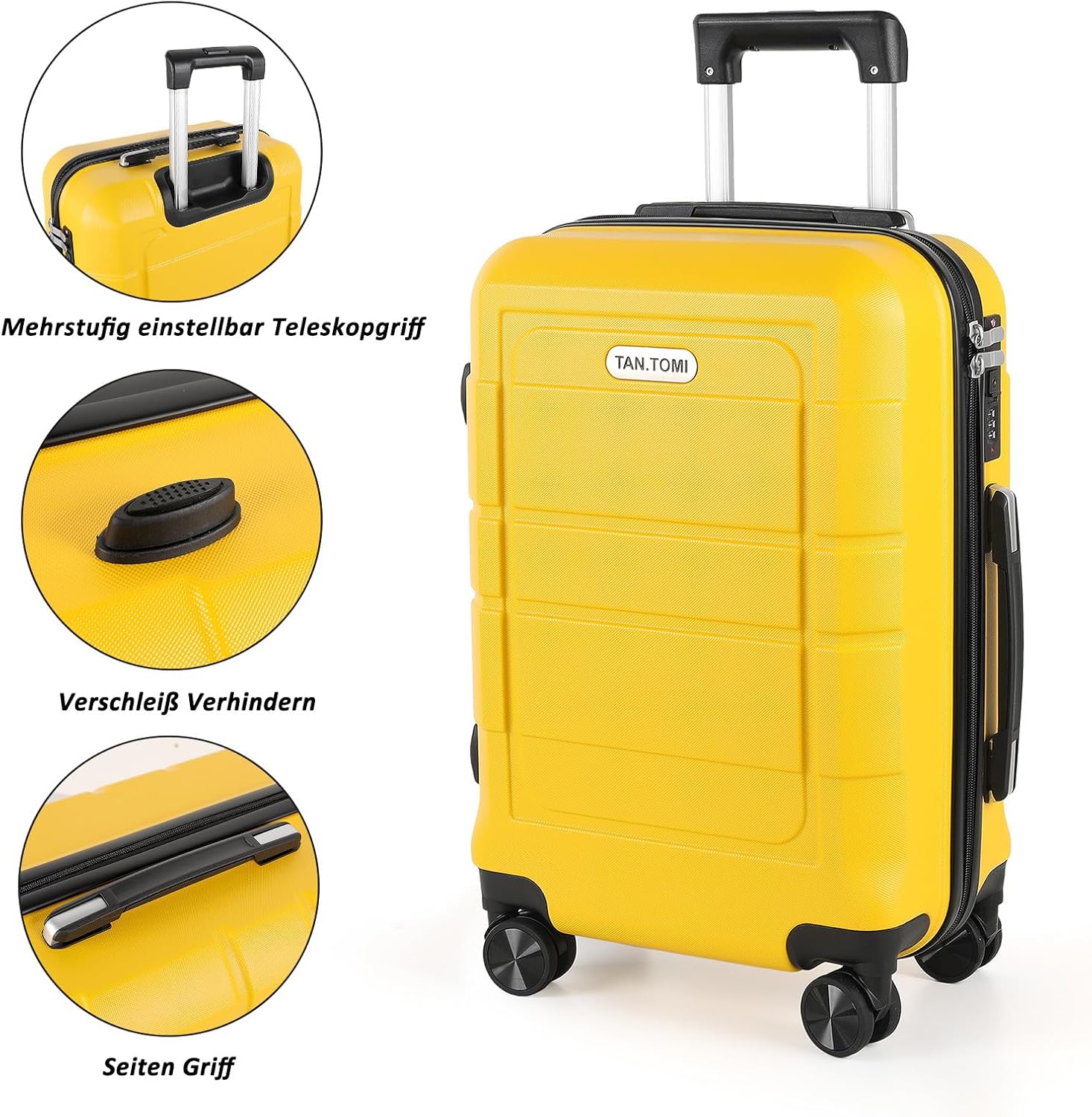 - ABS Koffer Hartschale + Aluminiumgriff: Unsere koffer handgepäck sind aus hartem ABS Material gefertigt, sie sind stark, leicht und kratzfest. Der Aluminium Teleskopgriff lässt sich der Koffer bei geringem Kraftaufwand schieben oder ziehen.