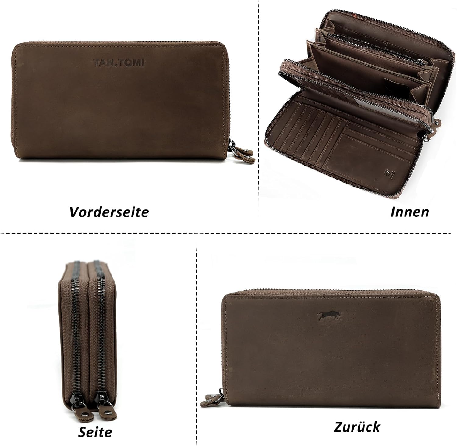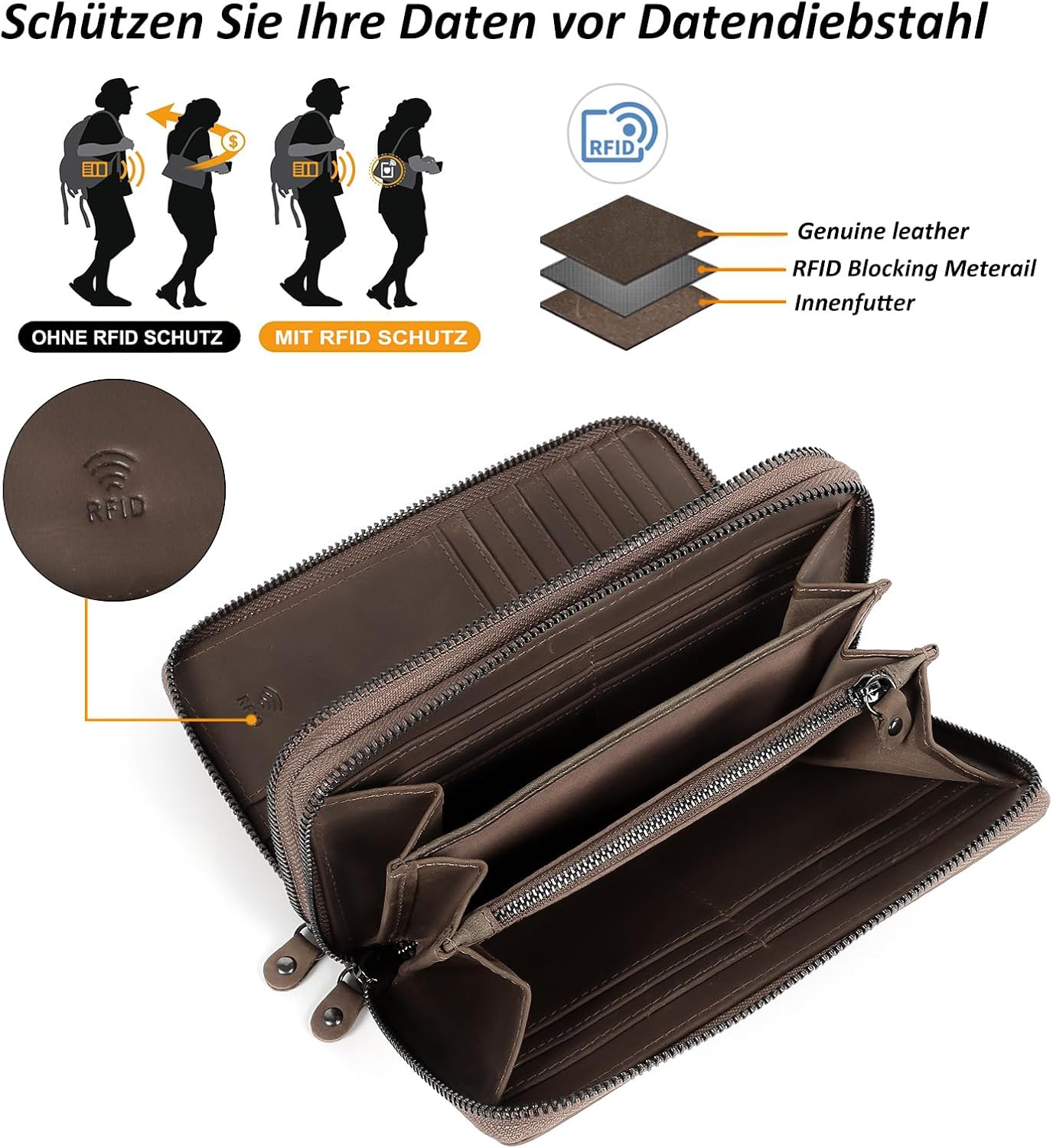 - 【Echtes Leder Portemonnaie Damen 】:Diese geldbörse damen ist aus hochwertigem Büffelleder gefertigt und bietet nicht nur eine angenehme Haptik, sondern auch eine natürliche Textur. Das hochwertige Material garantiert zudem eine lange Haltbarkeit.