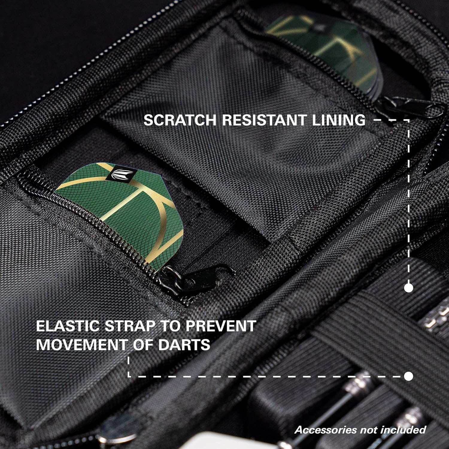 - Effiziente Organisation von Dartzubehör: Ausgestattet mit zwei Reissverschlusstaschen hält die Brieftasche Ersatz-Dart-Zubehör wie Flights, Schäfte, Punkte oder ein Swiss Point-Werkzeug organisiert und leicht zugänglich während Ihrer Spiele.