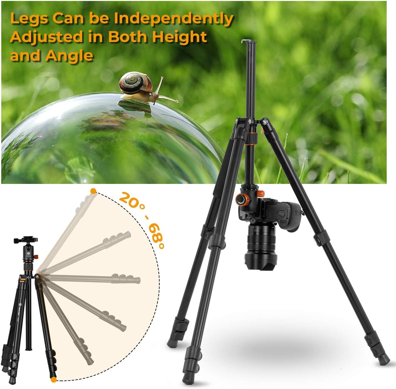 - Alle Stativ-Beine können ausreichend fest gedreht werden. Spezieller Design für Makroaufnahmen.